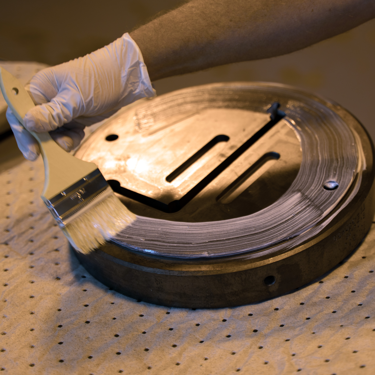 Apply a thin, even coating to the mating surfaces of the die stack with a brush prior to preheating. As the die heats, 325 LX EJECTEZE dries to a resilient, high-temperature film.