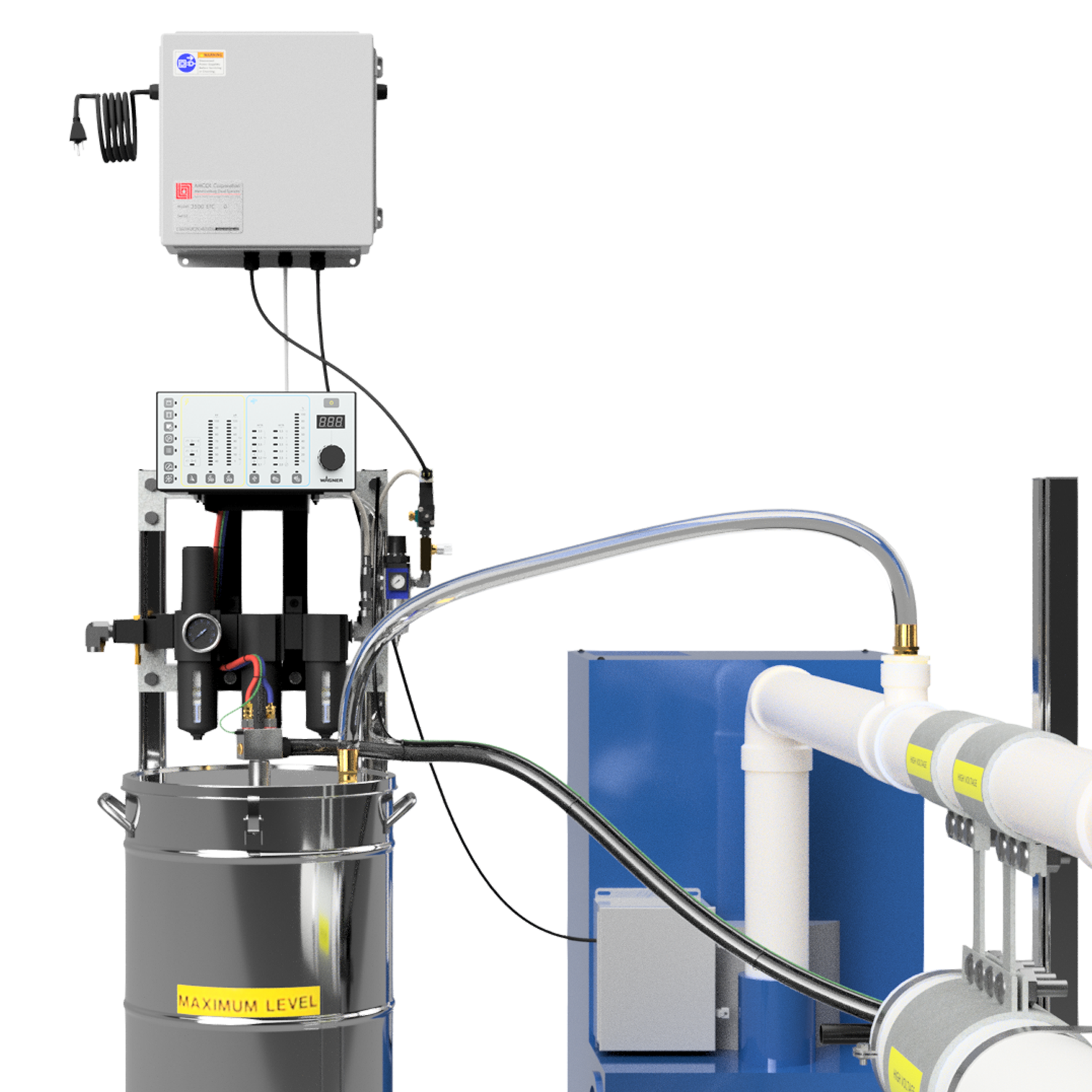 The 3500 Application System is plug and play ready for powder collection. The system is optimized to minimize overspray, but ready to handle what doesn’t adhere to the billet, preventing airborne dust and keeping the workspace clean. Pairing the system with a proper dust collection with HEPA filtration setup further improves air quality and operator comfort.