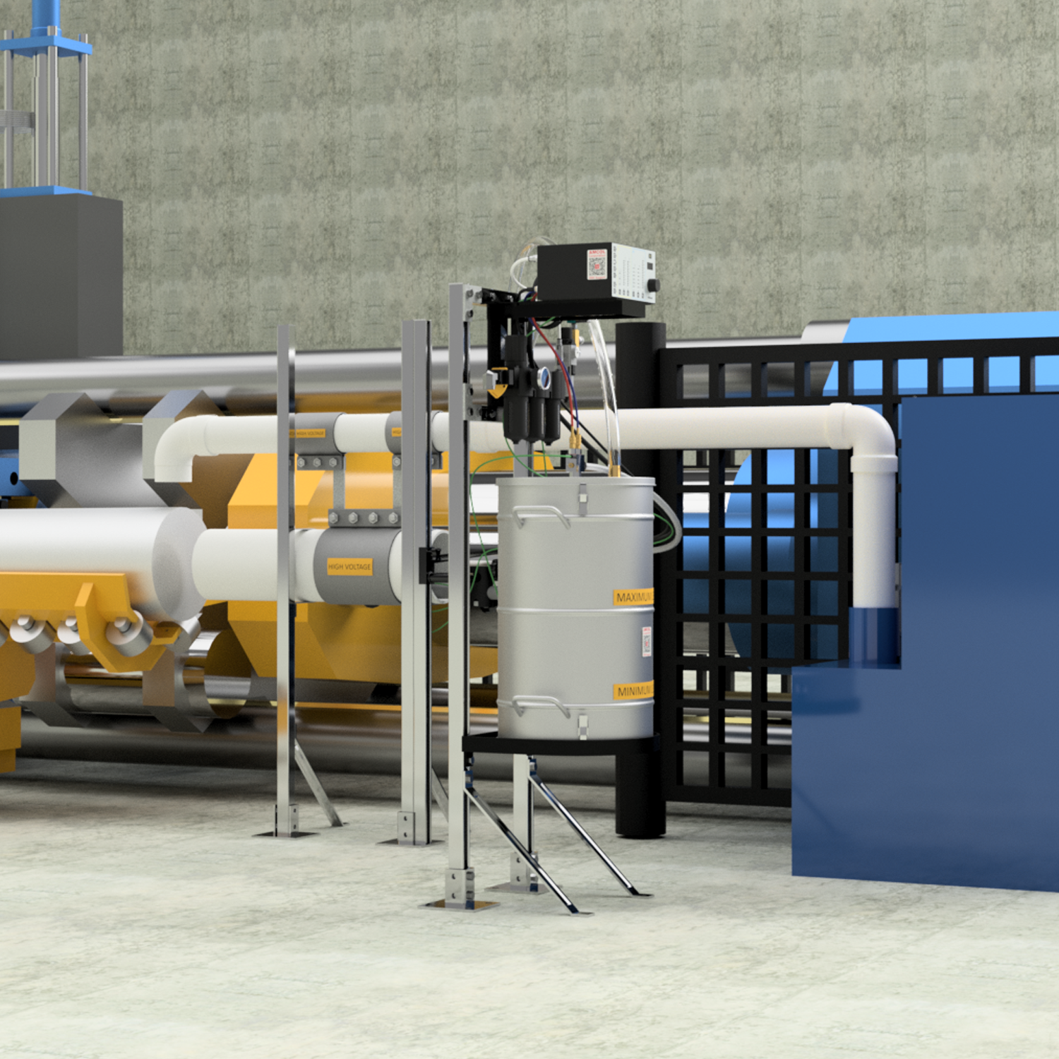 The electrostatic application system eliminates the need for manual press lubrication, reducing operator exposure to high temperatures and moving components. By automating the lubrication process, plants can achieve consistent coverage, faster billet turnaround, and improved safety compliance on the press line.